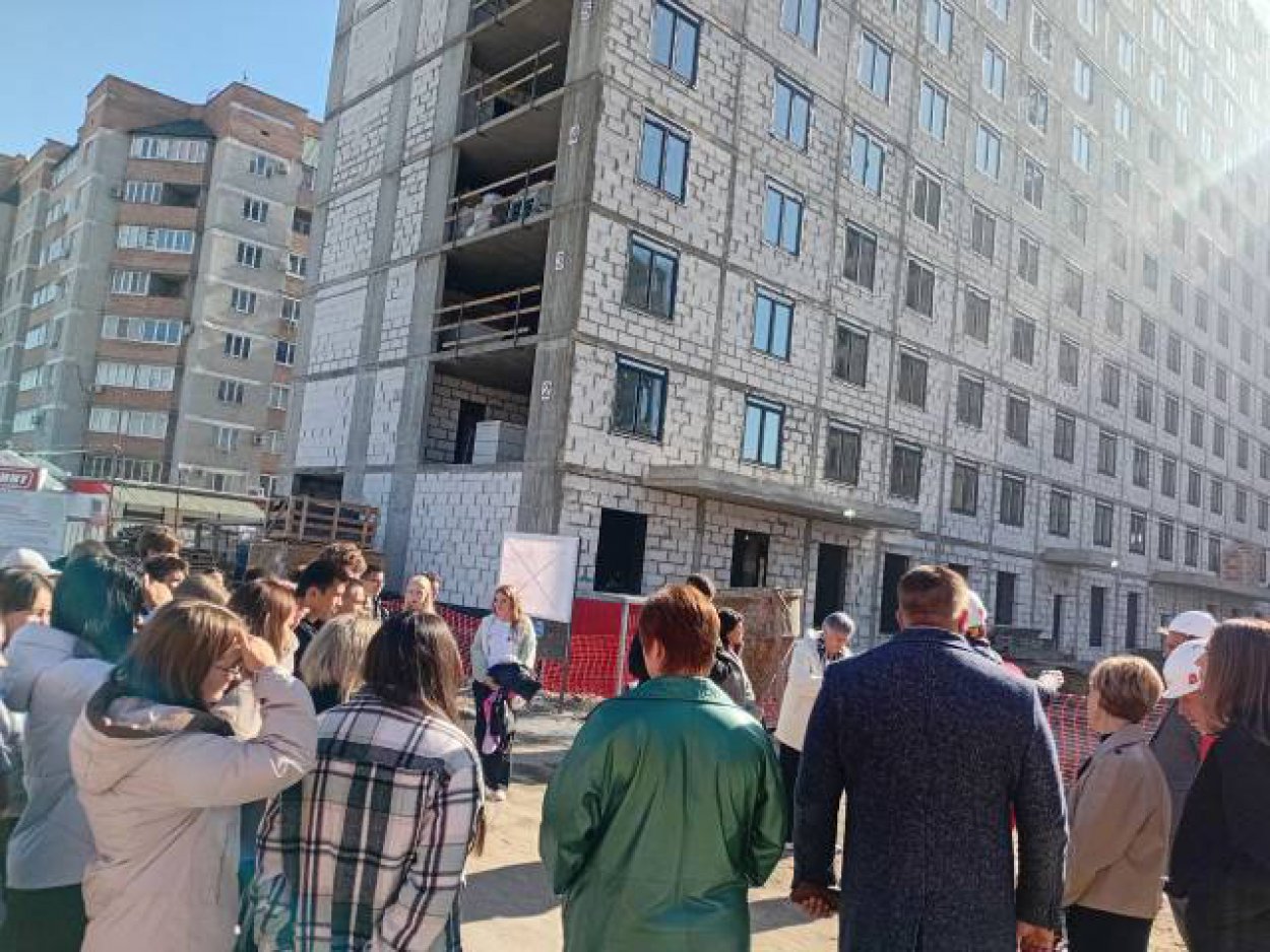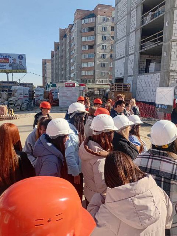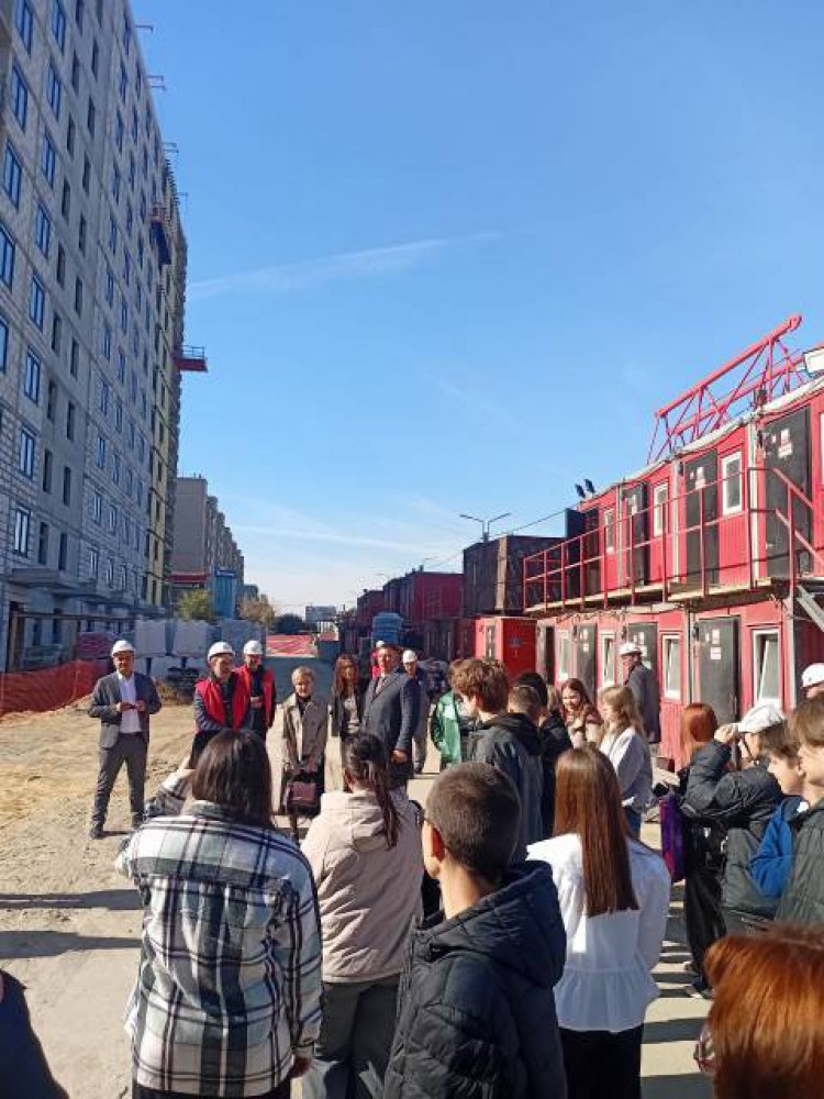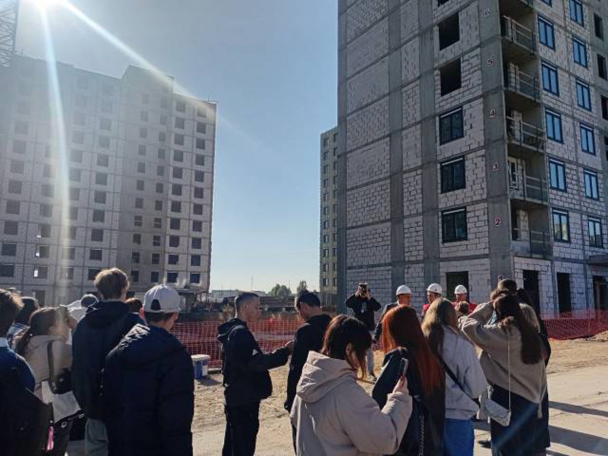 Затем участники заседания отправились на реальную строительную площадку. Студенты смогли воотчию увидеть, как создаётся современное жилье в Новотроицке и какие технологии при этом используют строители.