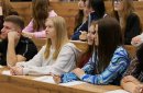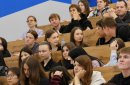 А на самом деле волнение присутствует большое. Я очень рад тому, что в данное время уже собралась полная аудитория, 144-я, то есть с амфитеатром, это достаточно большое помещение. Мне от этого очень радостно и волнительно. На мне лежит большая ответственность. Скажу сразу, что текст, который сегодня я буду читать, он, как мне показался, достаточно сложным. Поэтому я всем желаю удачи и, конечно же, чтобы все написали на пятёрки.
